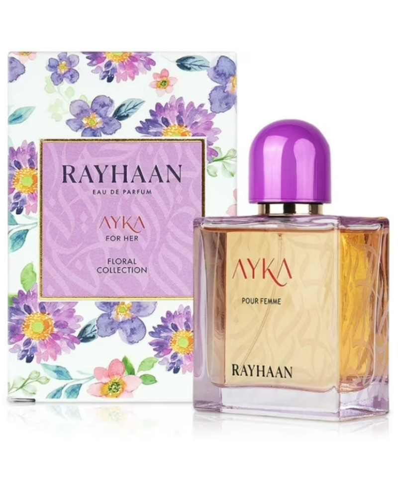 -Rayhaan Ayka EdP 100 ml es una fragancia femenina floral‑amaderada con un inicio fresco de peonía y cítricos, un corazón romántico de osmanthus y rosa, y un fondo cálido y sensual de sándalo, pachulí y pimienta rosa. Perfecta para destacar en el día a día o en ocasiones especiales.