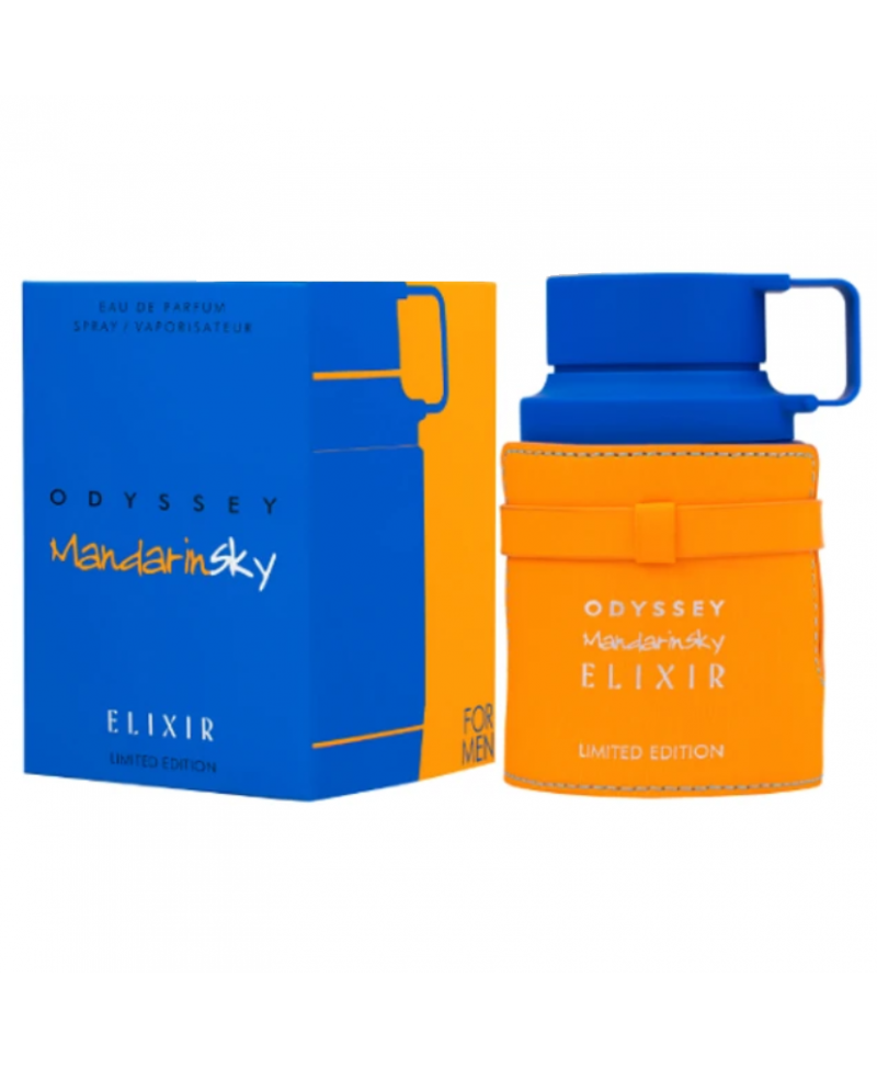 -Odyssey Mandarin Sky Elixir es una fragancia oriental-amaderada unisex, lanzada en 2025. Se abre con un brillo cítrico de mandarina y naranja, matizado por lavanda, cardamomo y pimienta negra. El corazón combina caramelo, haba tonka, pachulí e incienso, aportando dulzor y humo. Finalmente se asienta sobre vainilla suave y vetiver terroso, creando una estela elegante y seductora.