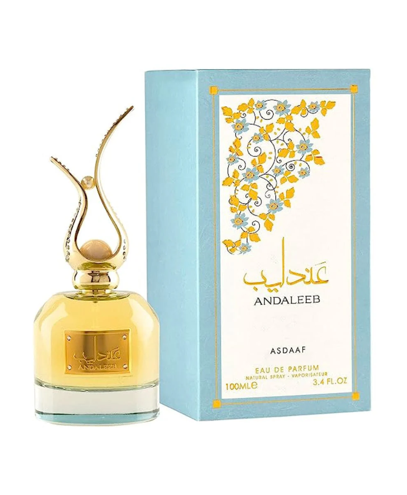 -Al Andaleeb de Asdaaf es una fragancia de la familia olfativa Chipre Floral para Hombres y Mujeres. Las Notas de Salida son naranja, bergamota y mandarina; las Notas de Corazón son jazmín y rosa; las Notas de Fondo son pachulí, sándalo y vetiver.