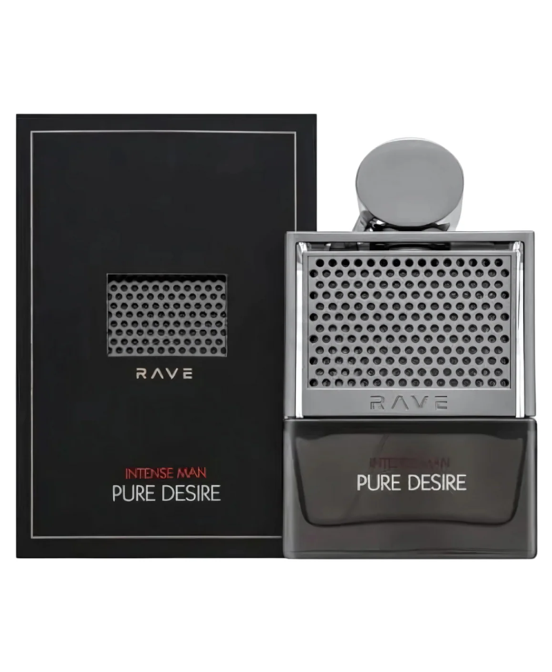 -Rave Pure Desire Intense Man de Lattafa Perfumes es una fragancia de la familia olfativa Almizcle Floral Amaderado para Hombres. Rave Pure Desire Intense Man se lanzó en 2000. Las Notas de Salida son grosellas negras, bergamota, manzana y piña; las Notas de Corazón son pachulí, jazmín, abedul y rosa; las Notas de Fondo son vainilla, ámbar gris, musgo de roble y almizcle.